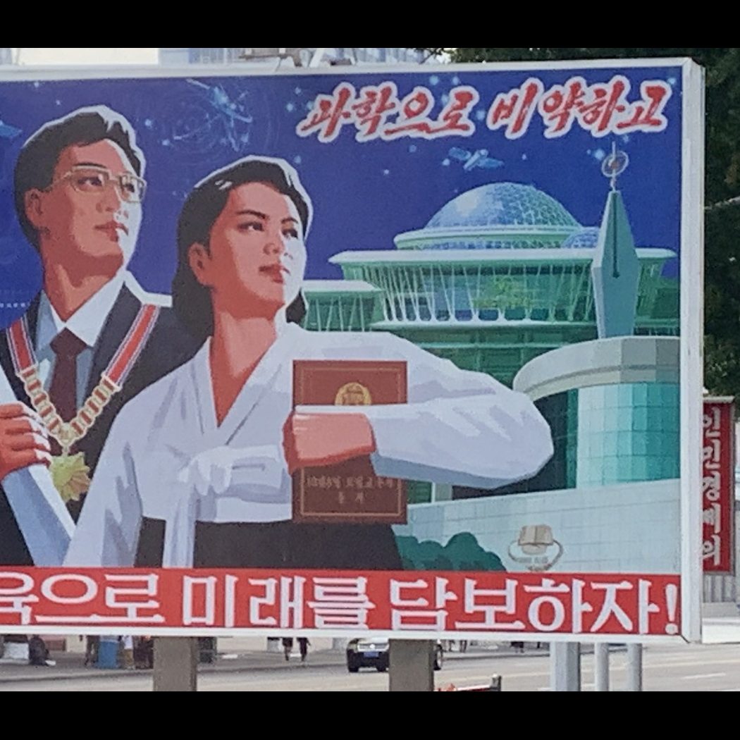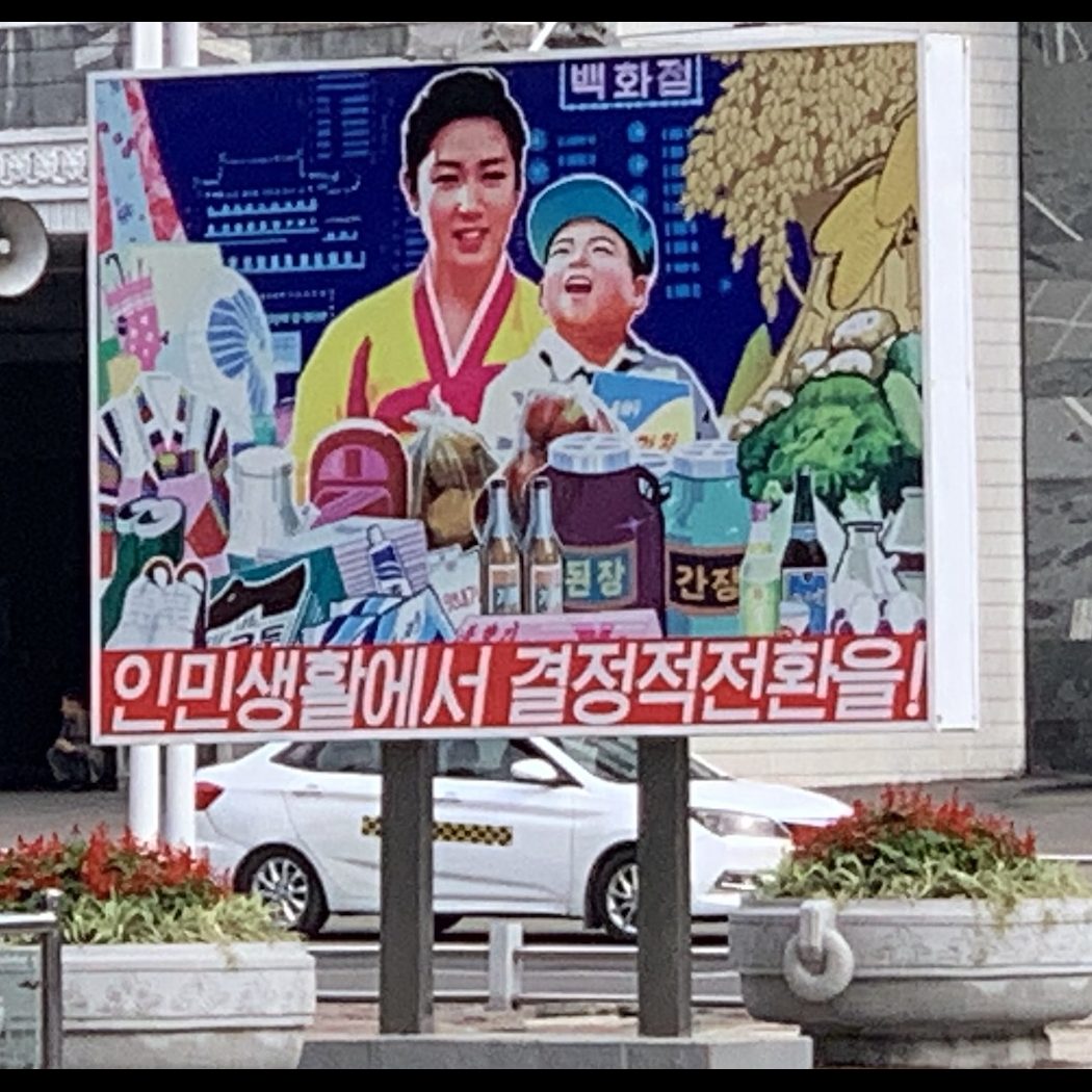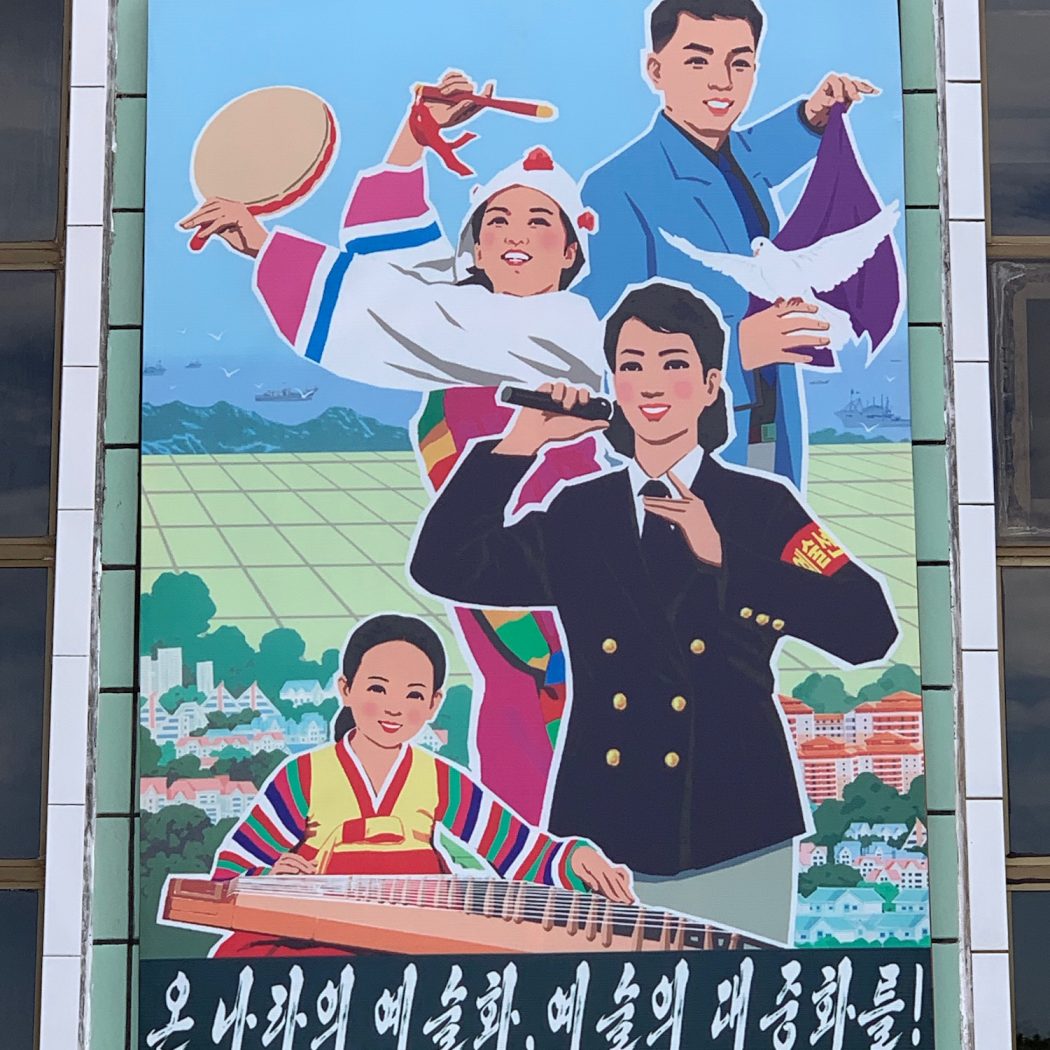 However, this time we saw almost none. The billboards now show much softer images of farmers, scientists, teachers, mothers with children. We even saw one billboard near the airport advertising a car; another revolutionary development. And nowhere could we find any military images on posters to buy, even though we toured the Mansudae Studio where the propaganda artworks are all made. Our guides told us that is because Kim Jong Un is trying to play down the signs of warmongering while there is hope of diplomatic talks with the US.
