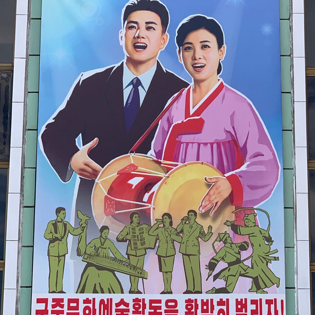 Still the only way into the country is via a travel agent based in Beijng. Again we used the excellent Koryo Tours, which months in advance set up a private schedule of activities that the two of us requested. It is a requirement to attend an induction at their offices where we were reminded of the basic rules for tourists: do not give your opinions about the Kim leaders, religion, nuclear weapons, defectors, or prison camps; do not take photos of the Kim statues, of which there are many, other than from the front-centre within an angle of 45 degrees and always of the whole body not just a part, like the head; do not take photos of construction sites or department stores; do not fold, tear or throw away any publications containing pictures of the leaders, and they all do; and do not point, though this is the default position of the Kims in literally thousands of photos and paintings.